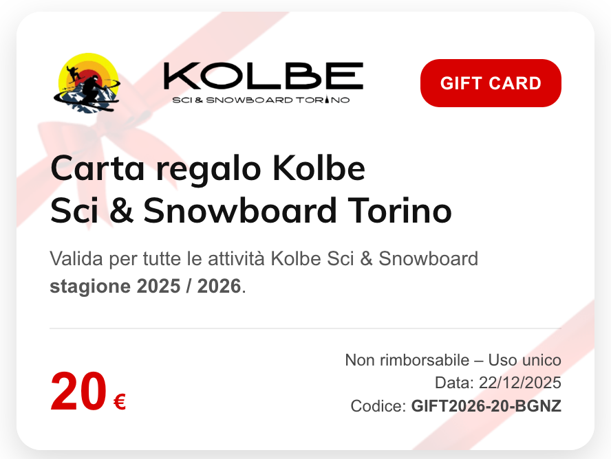 Natale, compleanno o solo per il gusto di fare un regalo epico, con noi siete a posto. Compilate il form che trovate a fondo pagina e vi rispediremo indietro una carta regalo fighissima pronta a far partire la vostra prossima avventura sulla neve! 🌨️